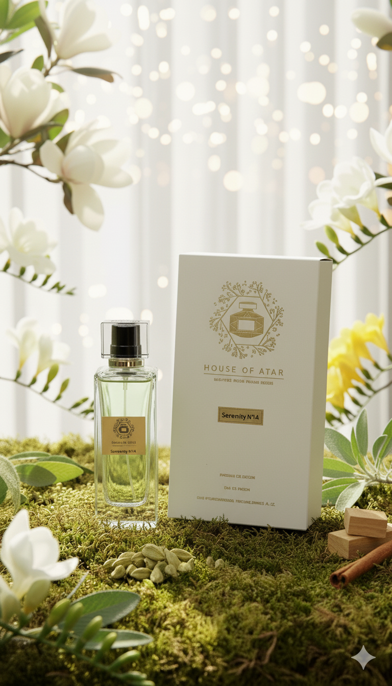 House of Atar SERENITY N°14 is a captivating fusion where delicate florals meet the vibrant embrace of green. A scent crafted for enduring beauty, offering both refreshment and profound elegance.